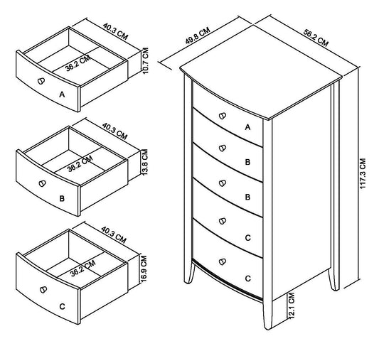 ASHBY WHITE 5 DRAWER TALL CHEST