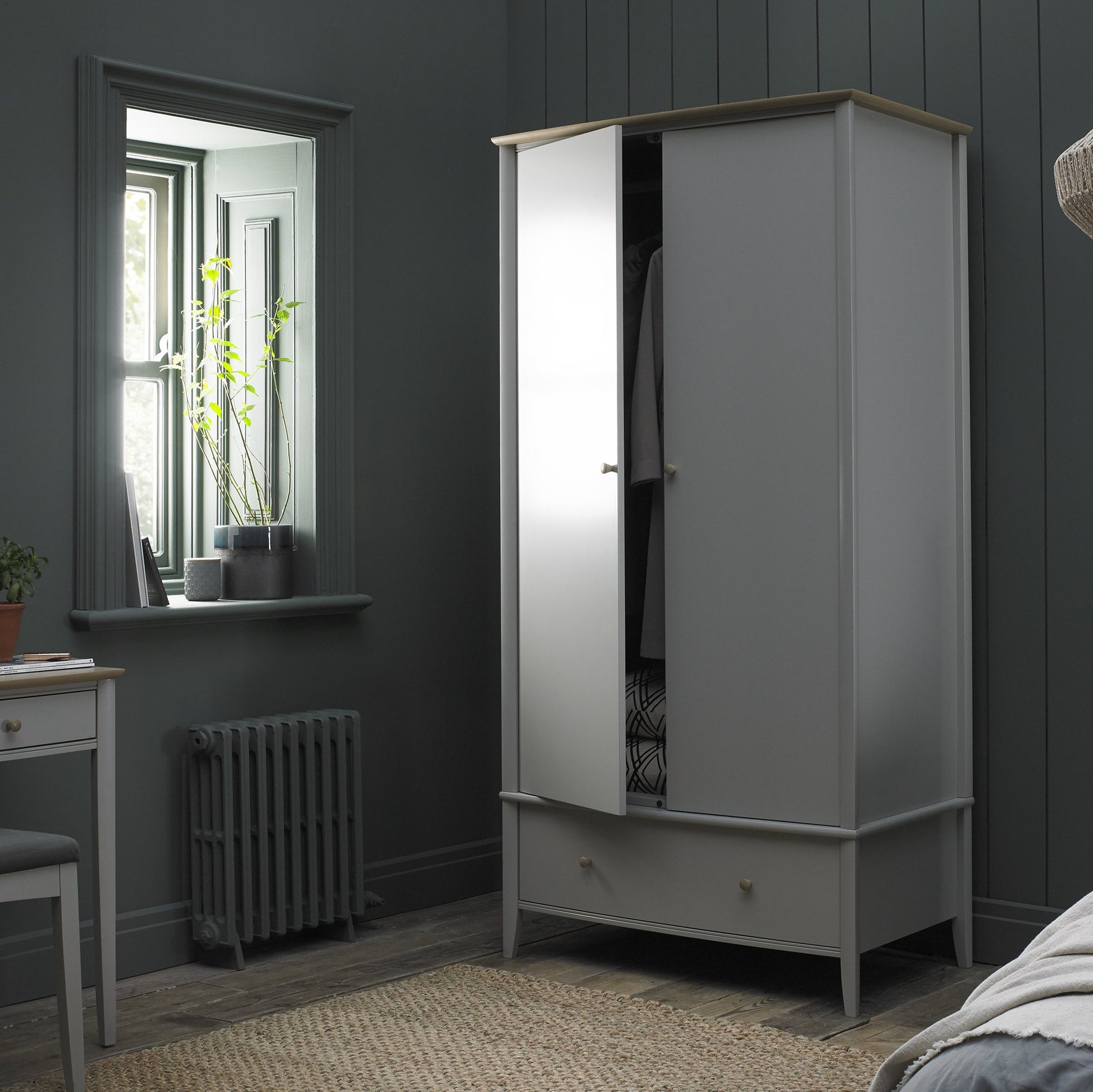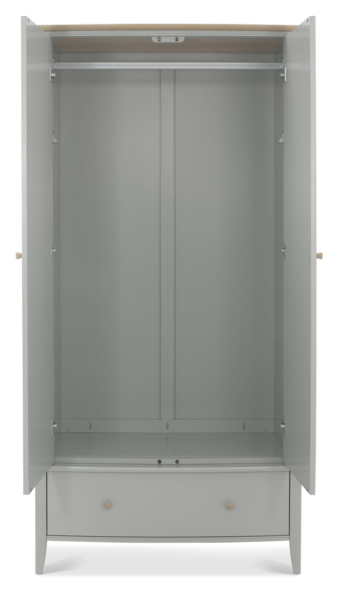 A timeless Scandinavian inspired bedroom range with clean lines and radiused frames, Guia boasts a striking contrast of fresh and contemporary pale finish on oak with a mid-tone grey pigment. Design features include beautiful tapering spindles set within the arched top rail of the headboard with soft, elliptical shaped frames on the cabinet encasing gently bowed drawers with groove detailing which are finally completed with delicate turned handles. Guia draws from past inspiration to offer a calm and casual aesthetic to any bedroom.