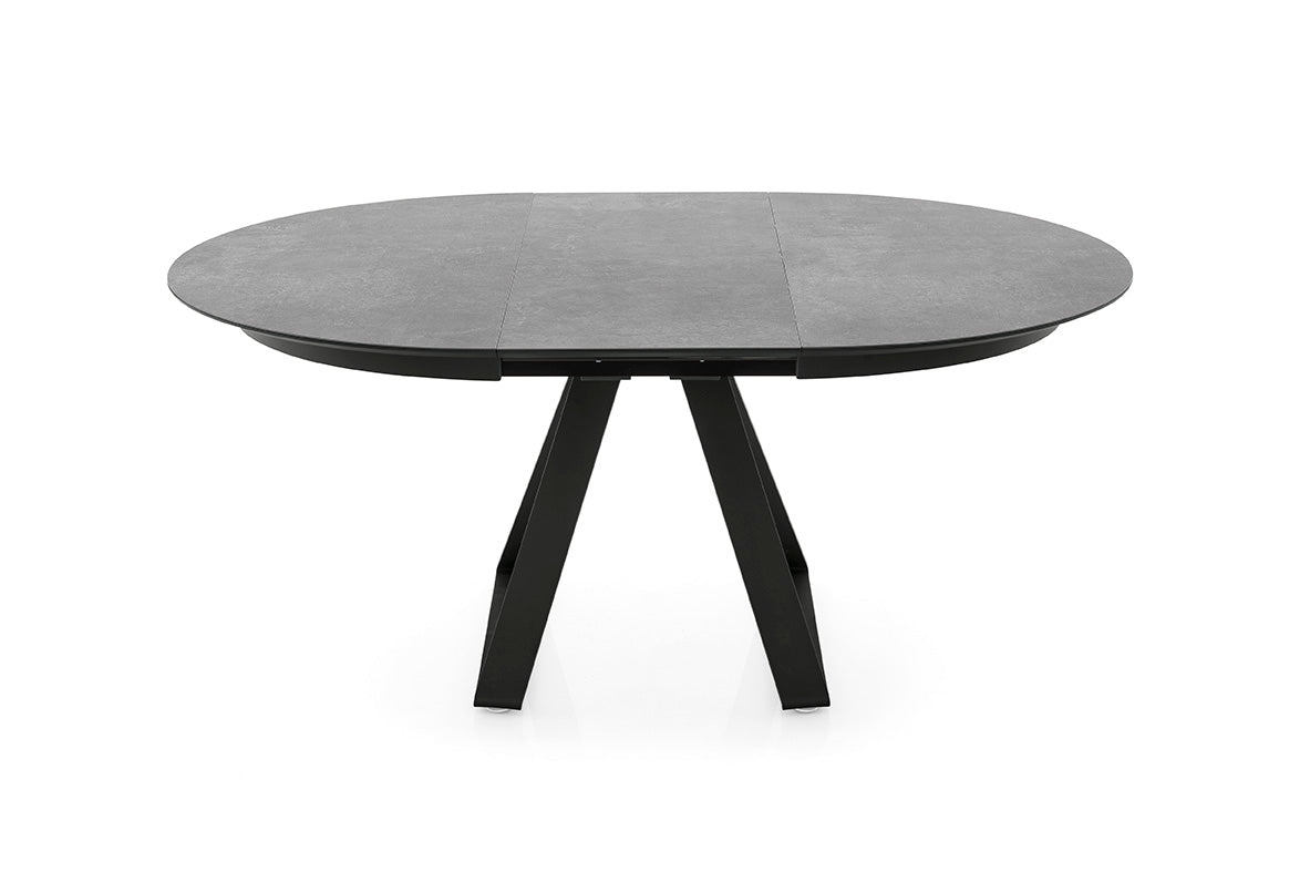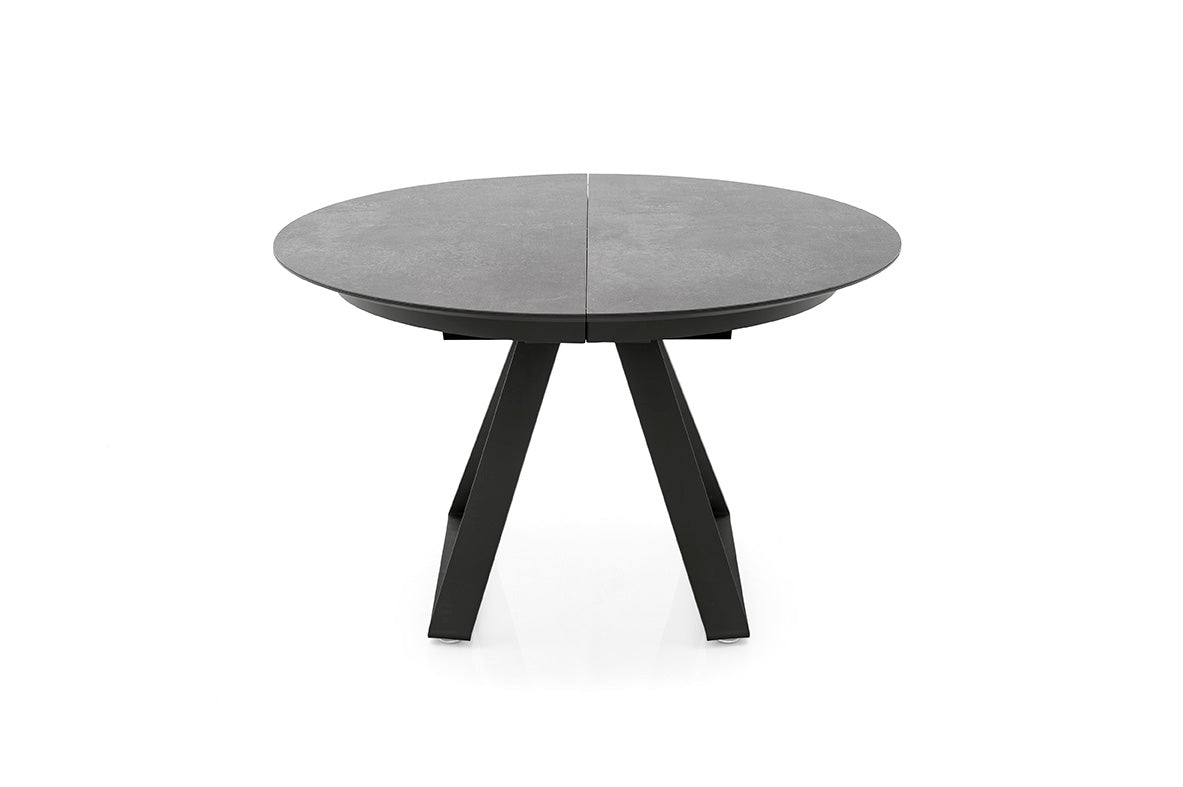 ATLANTE is a round table with a central fixed base boasting a handy butterfly extension leaf, meaning you can easily add on 2 extra places in the event of sudden guests or if you just want more room around the table. It has a metal base whilst the top and extension leaf are in 3-mm matt ceramic. An ideal combination of elegance and functionality