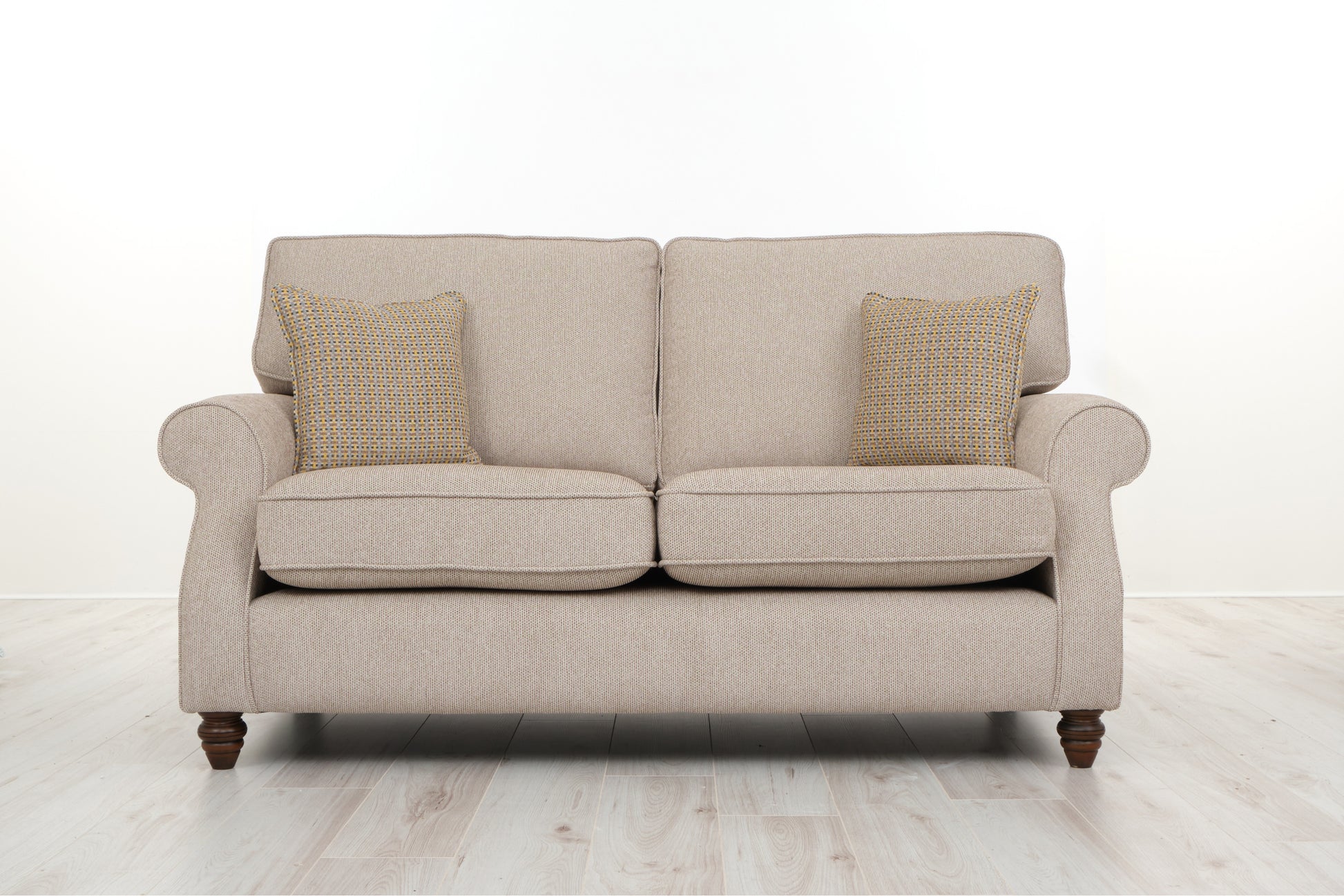 Collins collection continues to inherit the hallmarks of high quality detailing that we associate with the best of Irish manufacturing. Hand finished turned legs bring timeless appeal that work well in city or country homes alike. Every piece is hand crafted with meticulous detailing. Available in store to order in a huge selection of fantastic fabrics. Please note we have paired the Collins collection with a firmer seat foam which works really well with this sofa. if you wish to have a softer foam added this is available so please contact store.