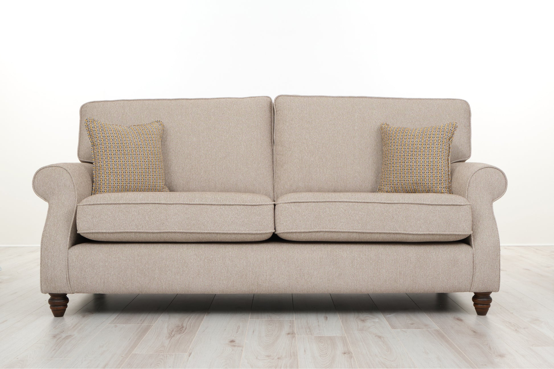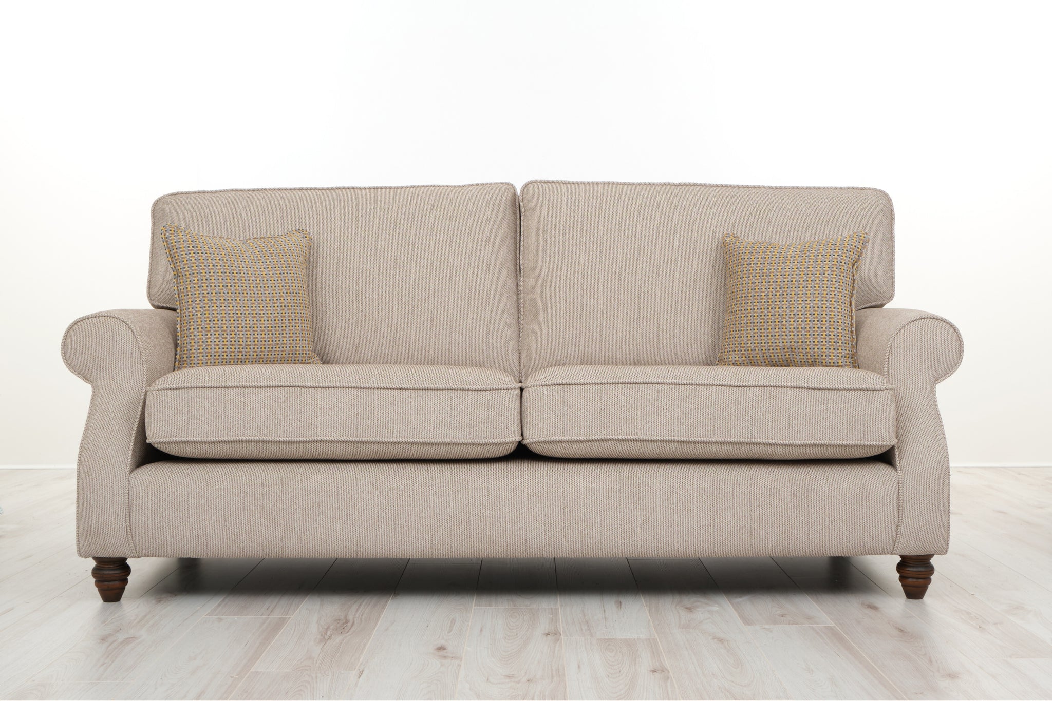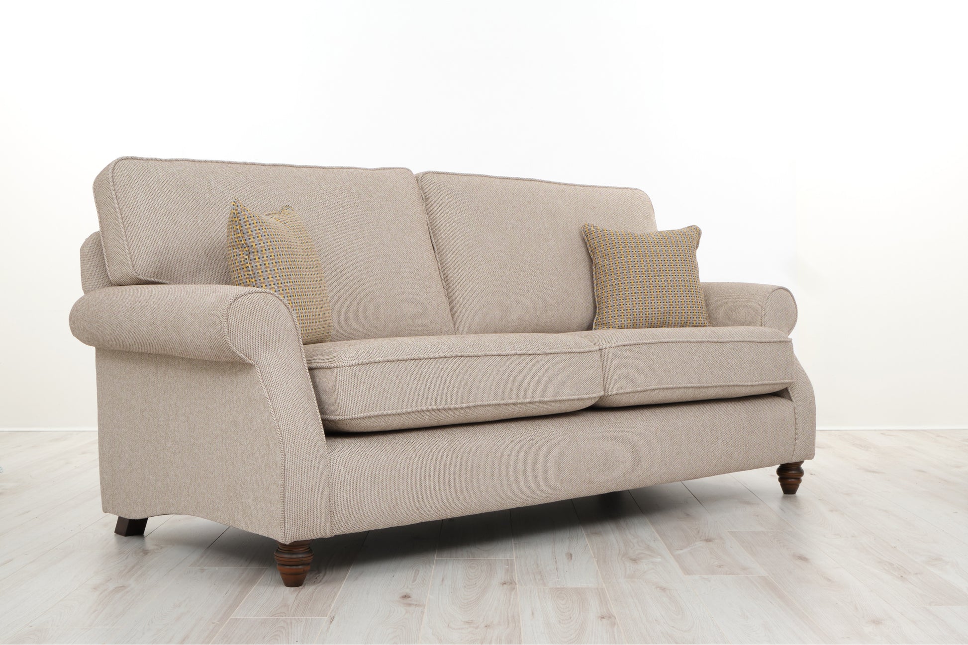 Collins collection continues to inherit the hallmarks of high quality detailing that we associate with the best of Irish manufacturing. Hand finished turned legs bring timeless appeal that work well in city or country homes alike. Every piece is hand crafted with meticulous detailing. Available in store to order in a huge selection of fantastic fabrics. Please note we have paired the Collins collection with a firmer seat foam which works really well with this sofa. if you wish to have a softer foam added this is available so please contact store.