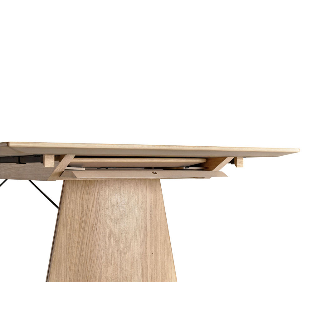 The Collum table with its nicely curved column bases is an iconic design second to none. The fixed table top with solid edges has a smart integrated storage facility for extension leaves at each end and can be ordered with one or two extension leaves matching the table top.The Collum sideboards, highboards and display cabinets represent a comprehensive range of cabinets in a soft organic design. All cabinets have a drinks/storage compartment on both sides with curved wooden doors fitted with a magnetic catch. The plinth of the cabinets is with adjustable feet. All doors and drawers are with soft-closing and the glass doors with push-release. The glass cabinets can be ordered with LED lights with sensor and dimmer. Contact us if you wish to order with this feature.