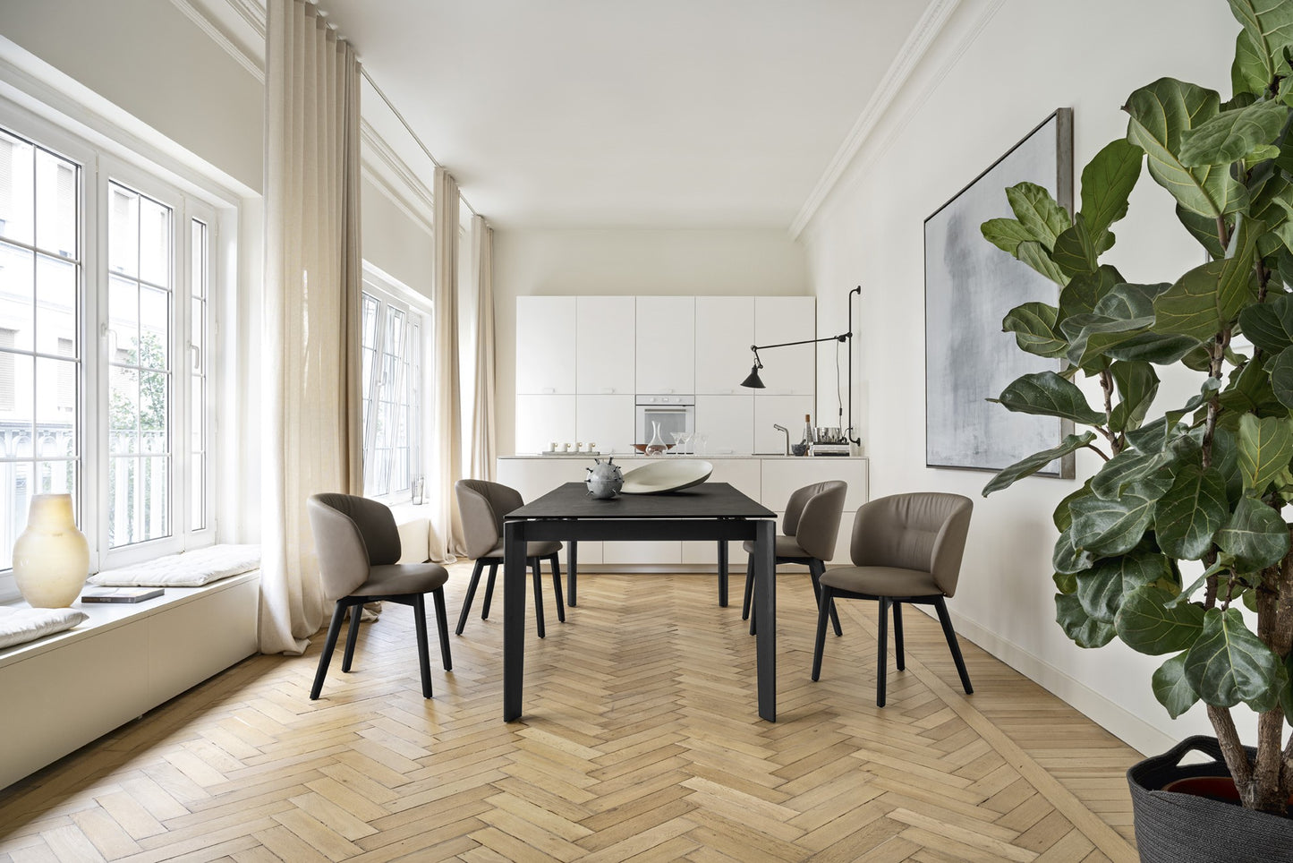 Dogma is a generously-sized extendable dining table, designed for conviviality.