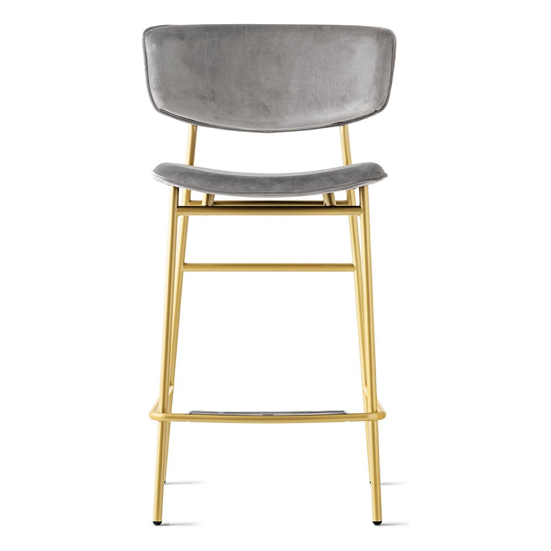 Inspired by the '50s design, this stool is part of the FIFTIES range featuring a slender 4-leg metal profile, combined with the classic and refined velvet, leather or the faux leather upholstery with its silky and soft feel, all characterised by warm shades.
