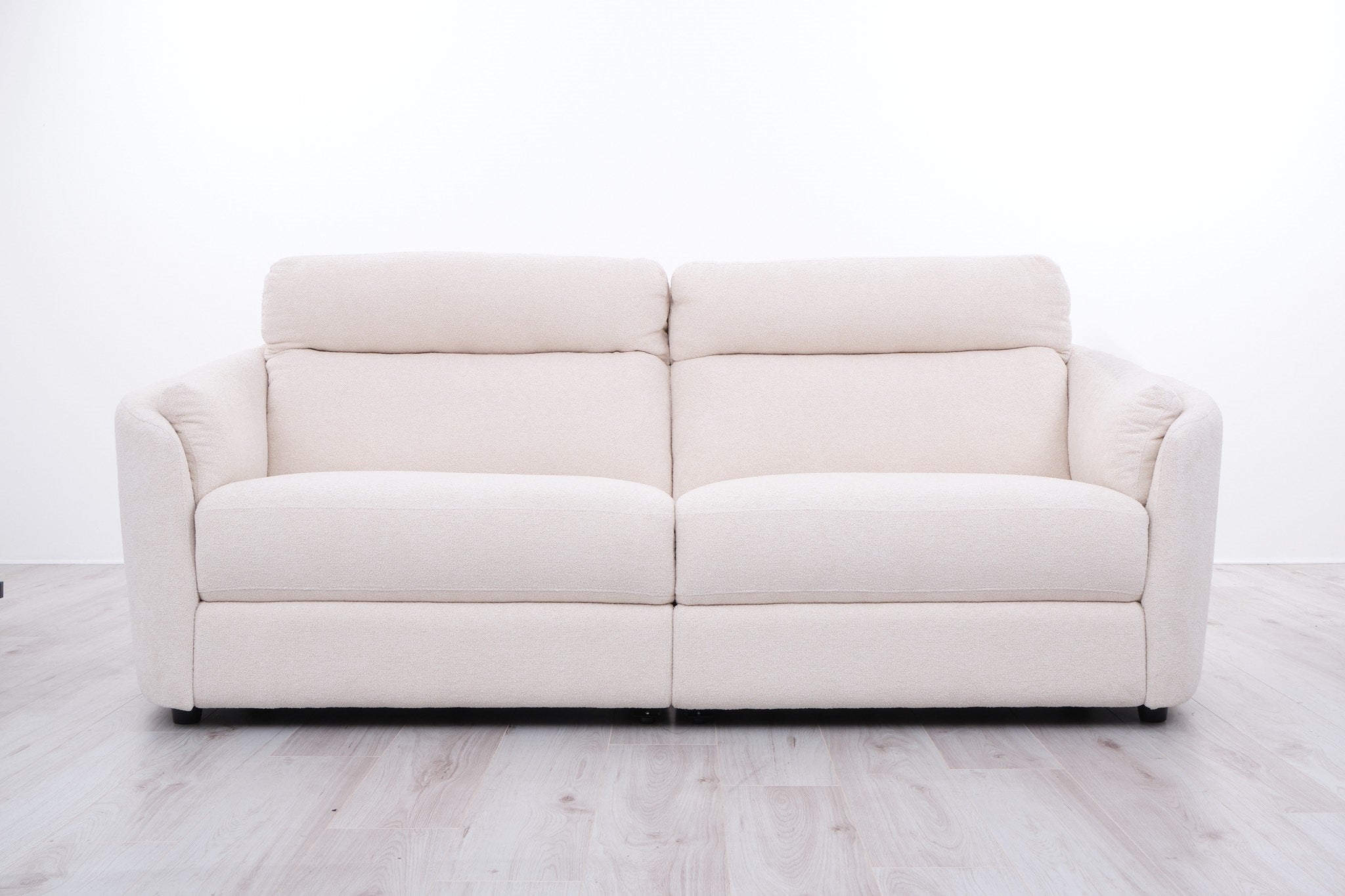Frascati is a transitional-style model with a closed base. Its signature design features elegantly curved, enveloping sides that rise toward the backrest in a graceful, flowing line, enhanced by a plush armrest cushion. The recliner versions include a mechanism that allows the backrest to recline and the footrest to lift, effortlessly operated via a control panel located on the side of the seat. Additionally, the backrests are equipped with manually adjustable headrests for personalized comfort.