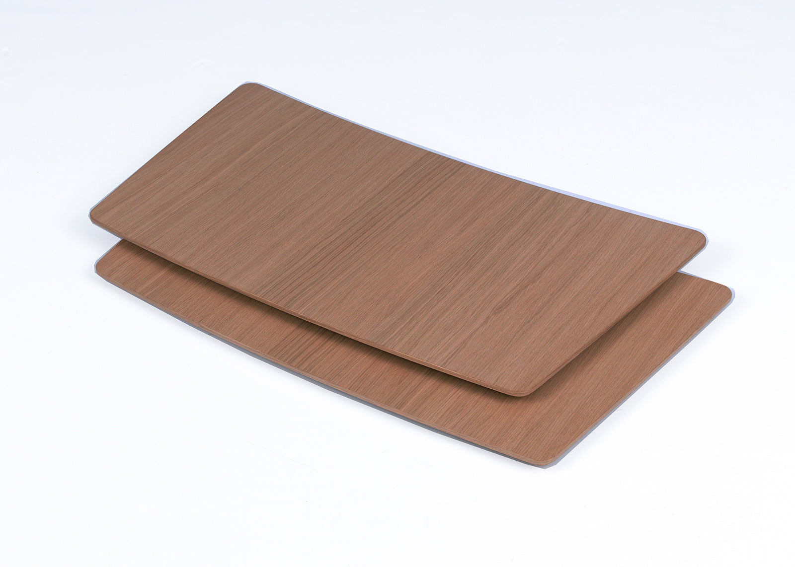 The elegant, iconic design is what made the Fusion table win the German Design Award Special 2021.The beautifully boat shaped top in Intarsia veneer in an asymmetrical, diagonal pattern in walnut. Can be ordered as a fixed top or with either 1 or 2 extension leaves with the same veneer as the tabletop. The large version of 220 cm can also be ordered with a smart storage drawer for the extension leaves fitted under the tabletop. The elegant legs have a black metal centre which can be veneered in the same wood as the tabletop or just black. The sideboards and highboards of the Fusion range are available with matching fronts in the striking Intarsia veneer, straight veneer or one of the beautiful laminates. All doors and drawers are soft-closing and shelves are adjustable.