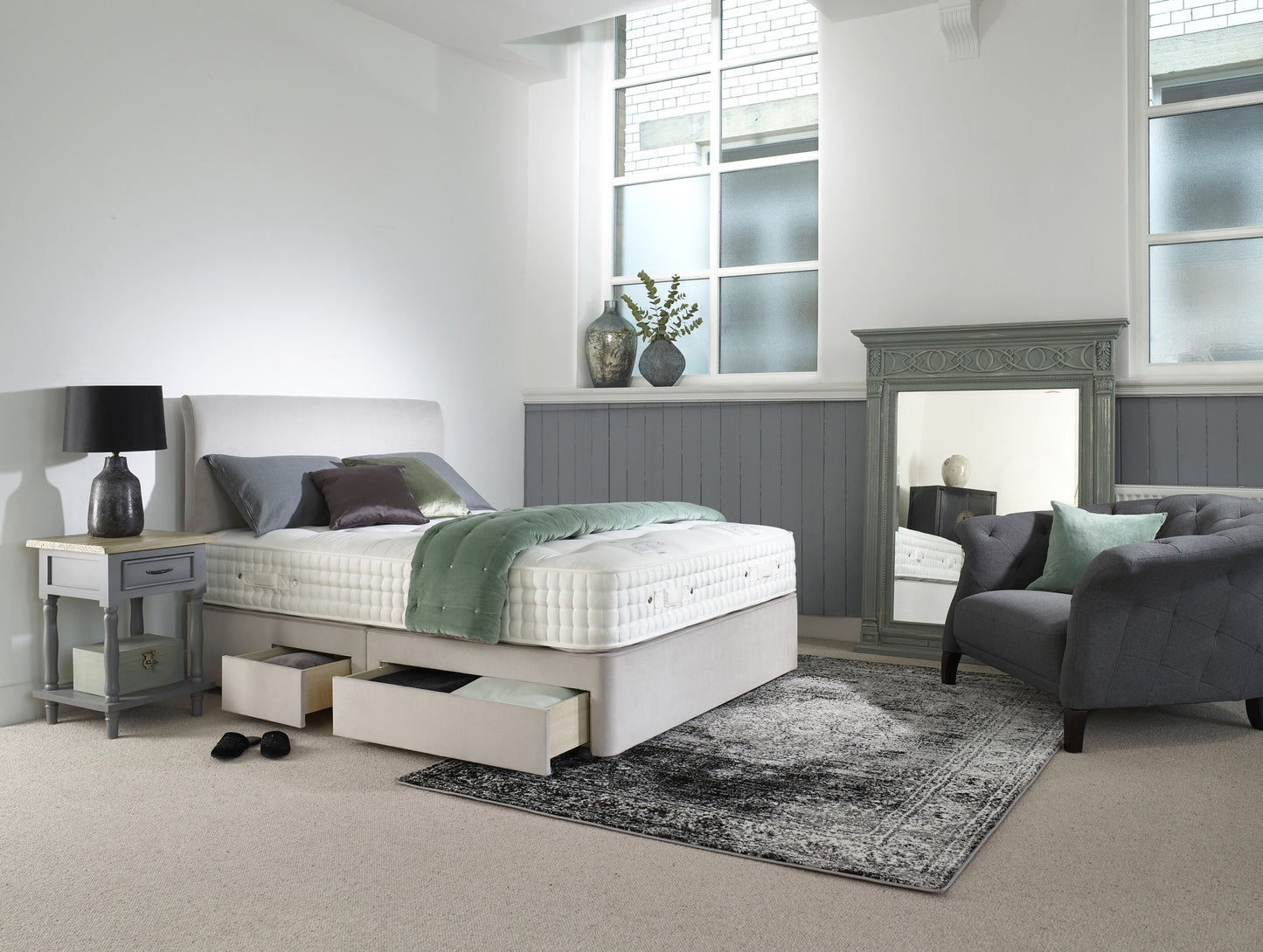 Please pop into our showroom and we can tailor your mattress to suit your needs. Harrison Spinks will offer stunning bases and headboards to match in a selection of fabulous fabrics.