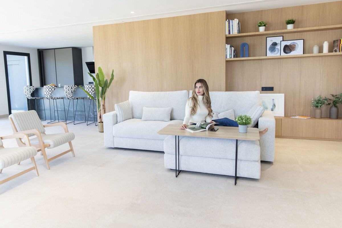 Building on the enormous success of our Teseo model by FAMA, they thought about the possibility of creating a new modular program that could offer the same comfort as Teseo but with a more classic construction, with the seat cushion separate from the base.