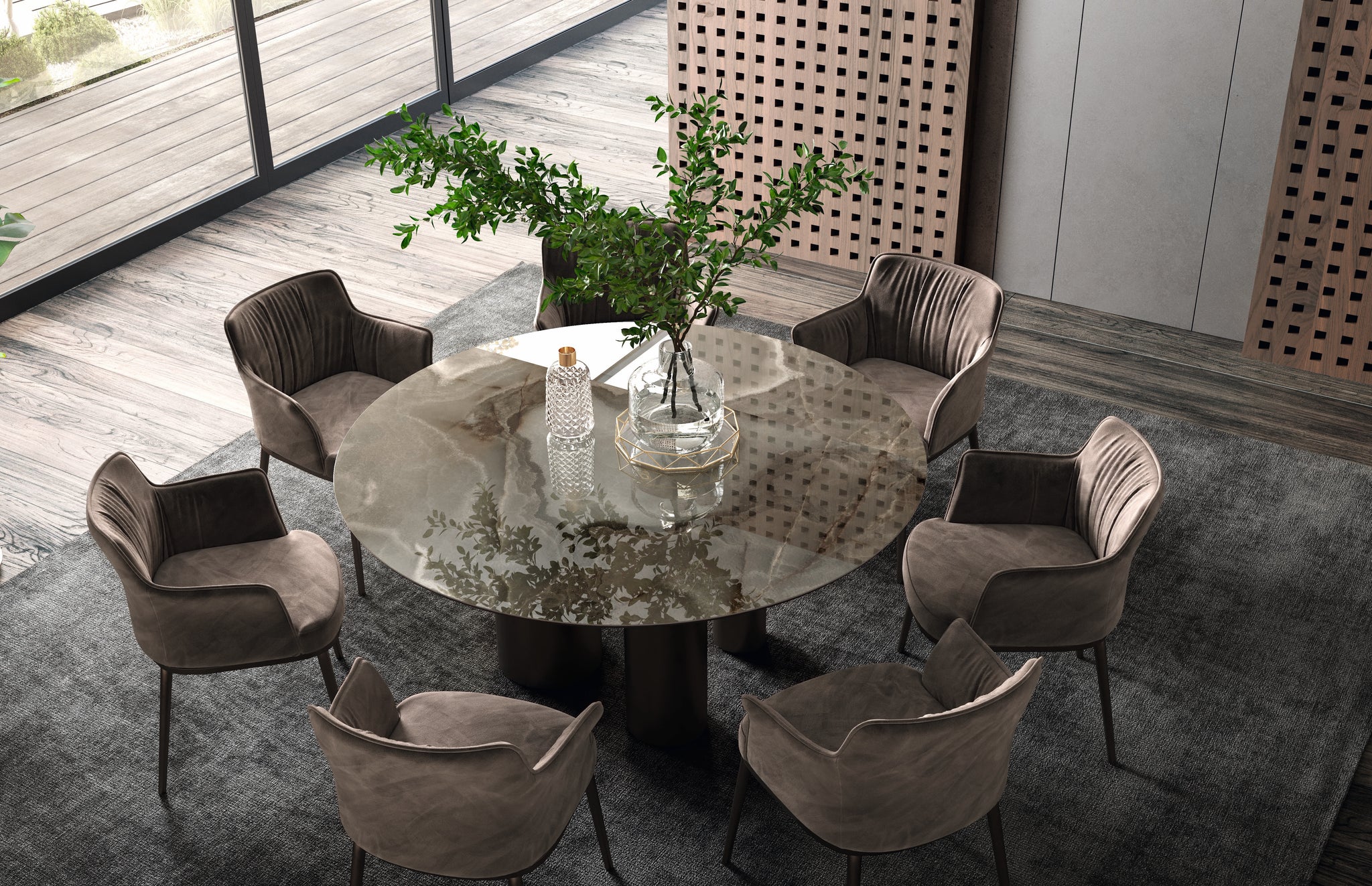 Italian designed and made. Dining tables with stunning stone finish tops can add a touch of elegance and sophistication to any dining room. These tables are known for their exquisite craftsmanship and attention to detail. There are other finishes availble so please contact store for more details