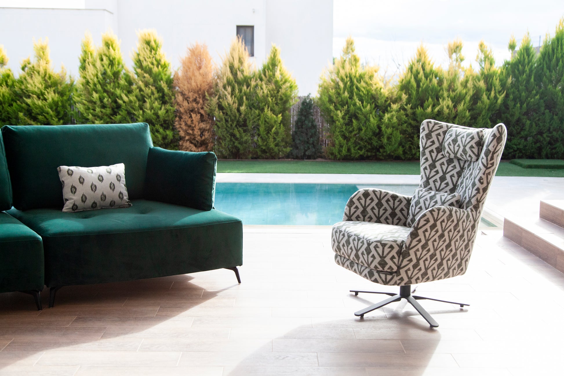 KYLIAN is a light occasional armchair that can be combined with any sofa or corner group. With Its high back design it fits perfectly for every user and the lumbar cushion and butterfly headrest adds even more support and comfort. Lumbar cushion and headrest is included with the chair. KYLIAN has multiple fabric and leather options. it also comes in different leg finishes so please contact store for additional information.