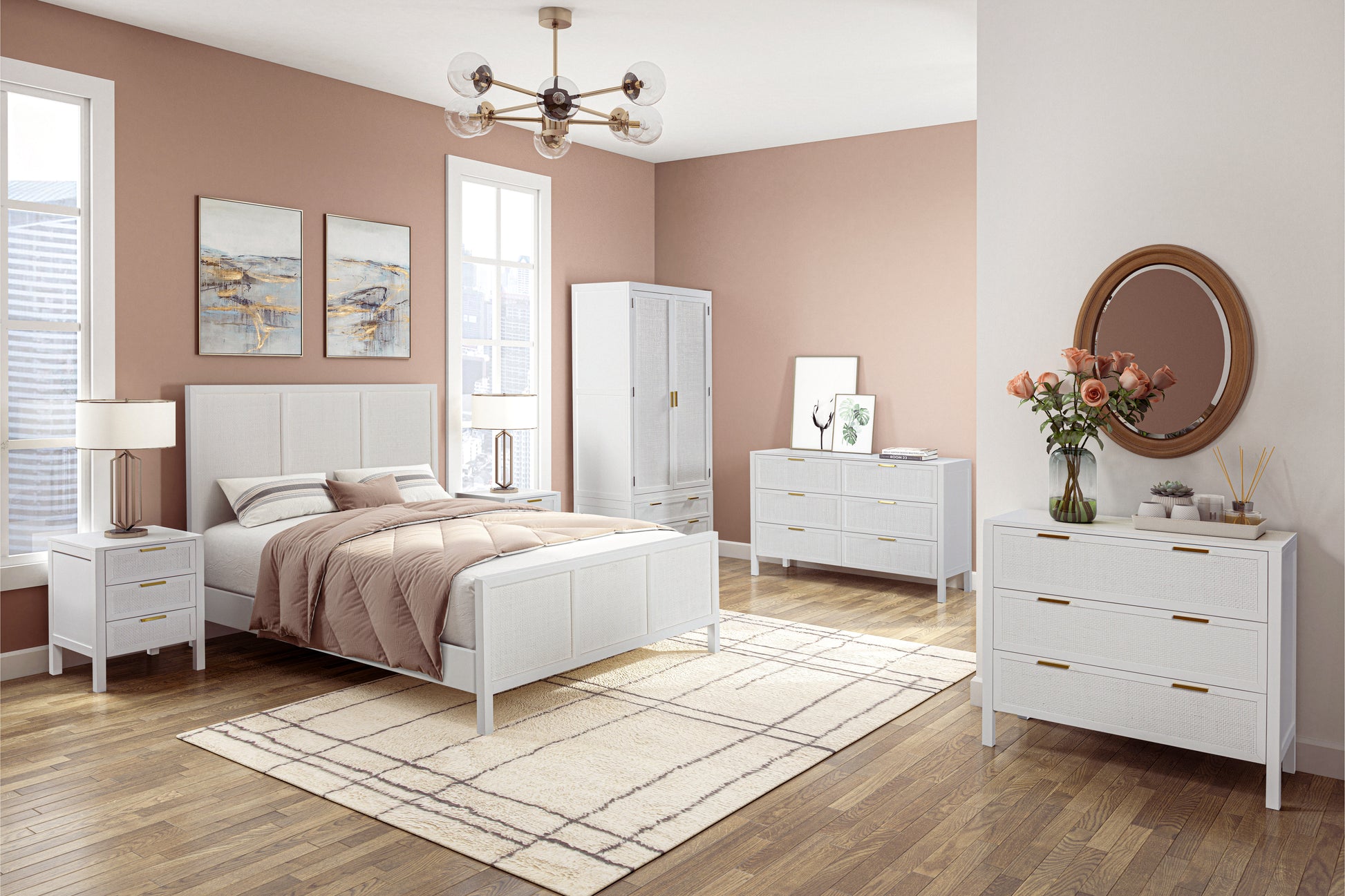 The beautiful LLOYD range with a white painted finish, brass handles, and rattan elements gives a classic and elegant look. White paint can create a clean and fresh aesthetic, while brass handles add a touch of sophistication. Rattan accents bring in a natural and textured element, adding warmth to the overall design.