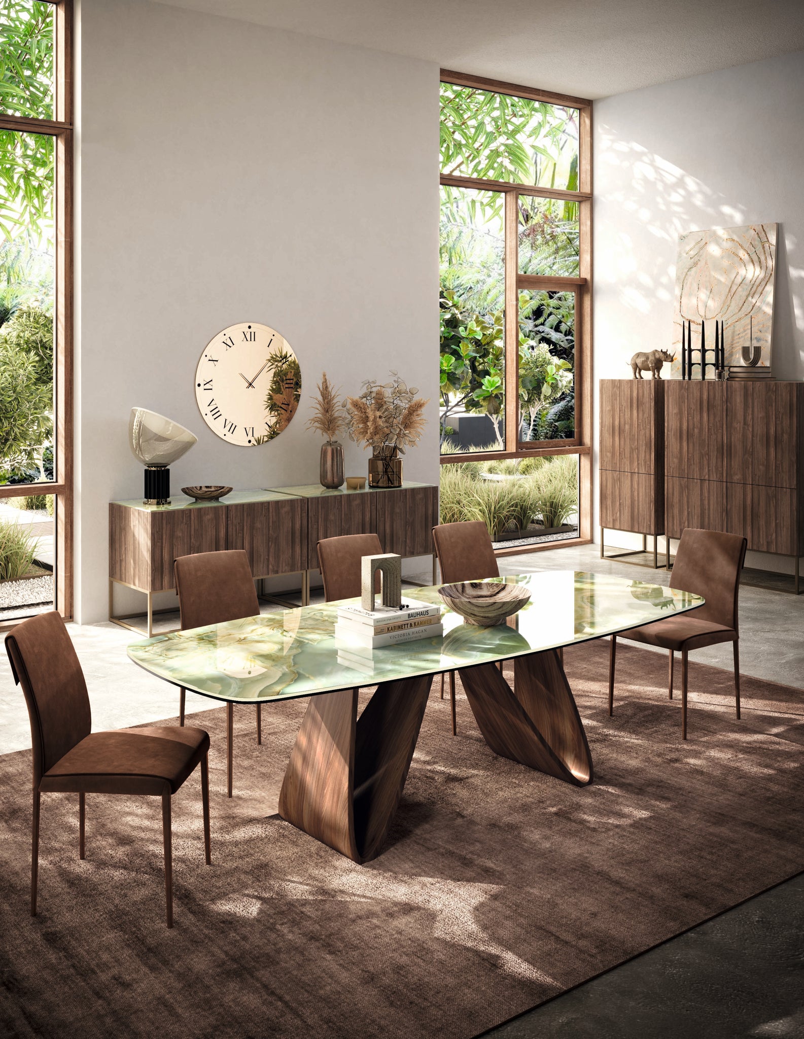 Italian designed and made. Dining tables with stunning stone finish tops can add a touch of elegance and sophistication to any dining room. These tables are known for their exquisite craftsmanship and attention to detail. There are other finishes availble so please contact store for more details