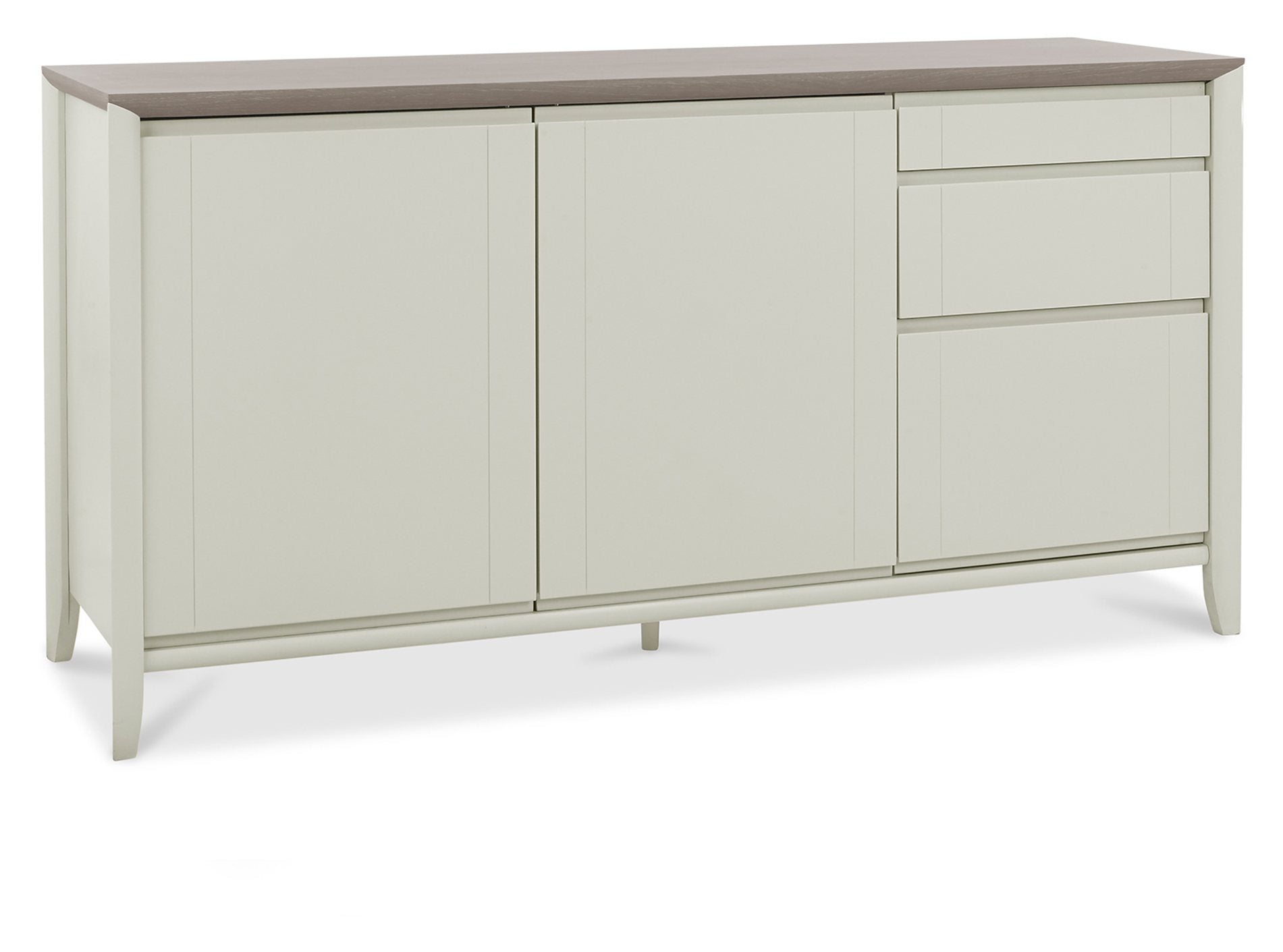 Riga is a strikingly contemporary, modular-based collection of dining, living room & home office furniture that offers flexibility and practicality in tune with today's lifestyles. Made with a combination of attractive grey washed oak tops contrasting with soft grey pigment frames, this range is hugely versatile, offering three sizes of tables, ultramodern low back slat and upholstered chairs as well as a more standard high back slat chair, in fabric or faux leather options. The design features curved tapering legs that meet the patterned tops in a three way mitre joint, boasting a real technical prowess by way of precise CNC machining, neat finishes and general technical excellence to create a complex simplicity! Inspired by the needs of open plan living, it allows you to create functional combinations of shelf units and cabinet pieces that fit seamlessly within dining, lounge or home office settings. The Riga collection is the perfect solution for the demands of modern-day living.