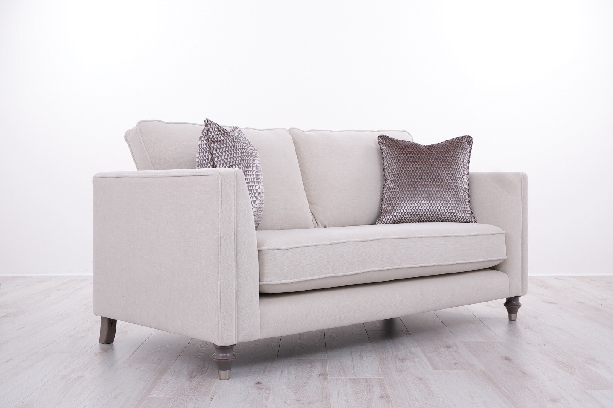 Stylish new Irish-made sofa! Classic design with a hint of a modern twist, along with a unique full-length seat cushion so no divide betweeen seating sections. The Aqua Clean fabric is a great feature, making it easier to maintain for everyday use. If you're considering different fabric options and leg choices, visiting the store will give you a better look at the full range available. This sofa will add a touch of class and sophistication to your living space.